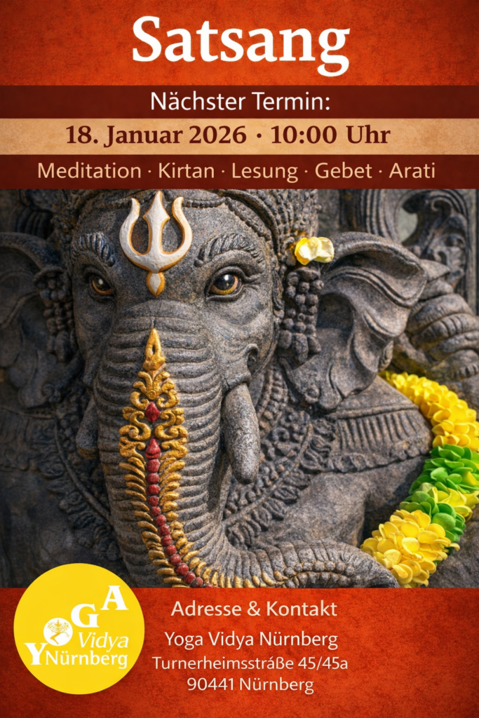 Wir treffen uns zu stiller Meditation, gemeinsamer Praxis mit Kirtan, Lesung, Gebet und Arati. Der Satsang ist kostenlos – Spenden sind herzlich willkommen.